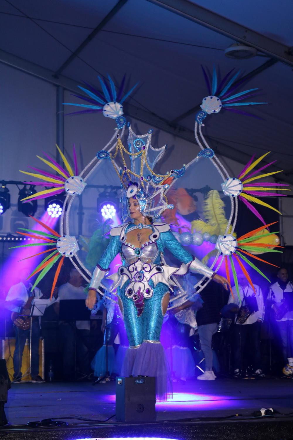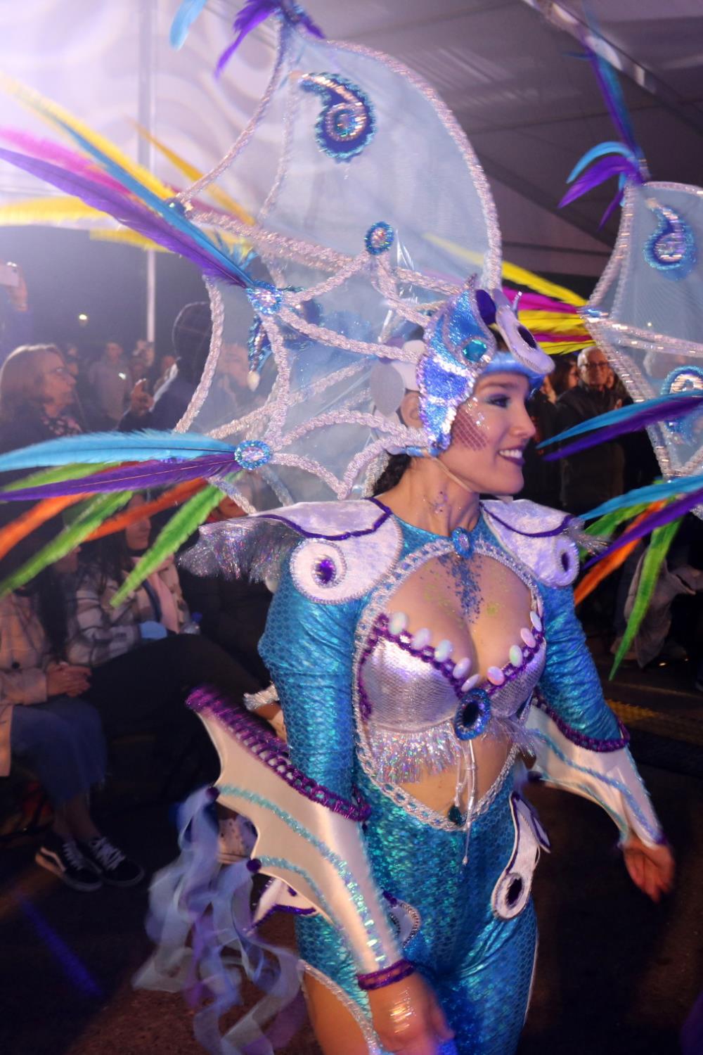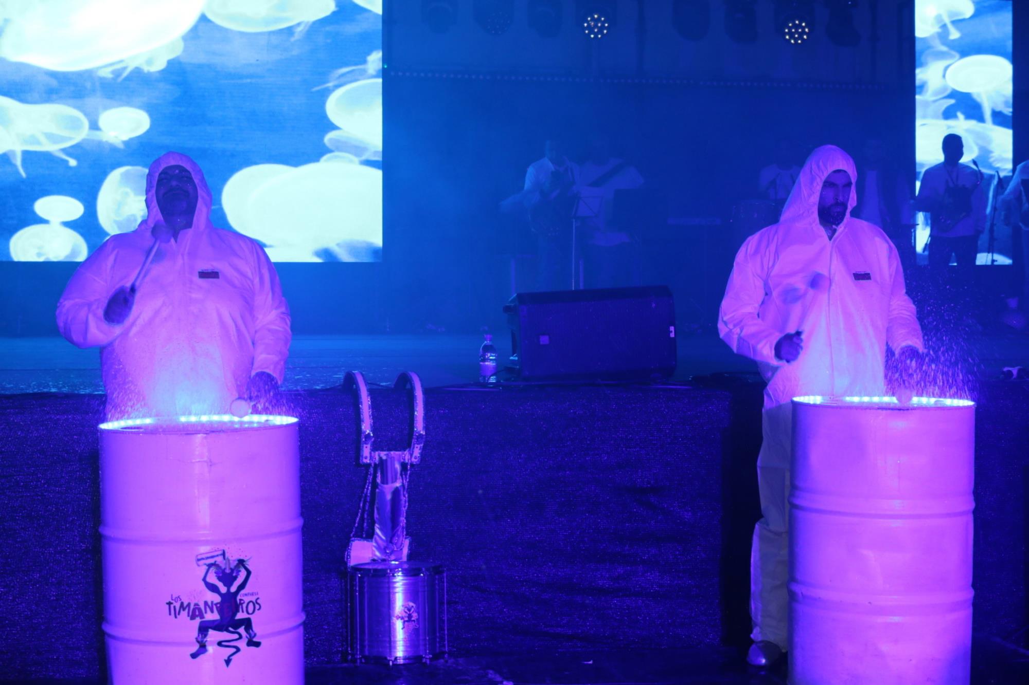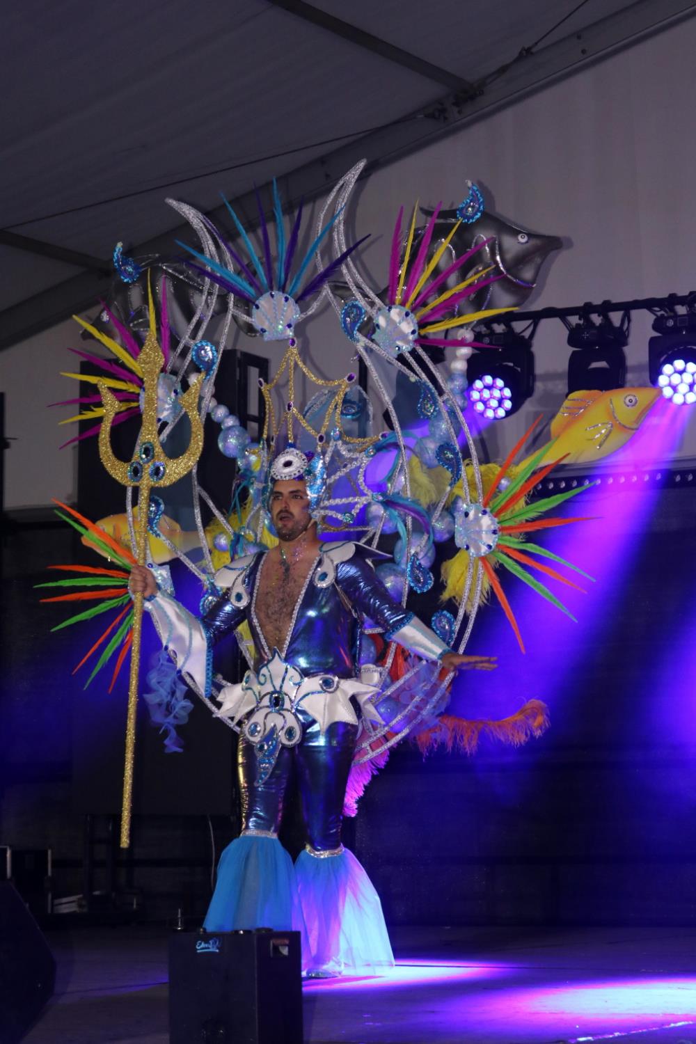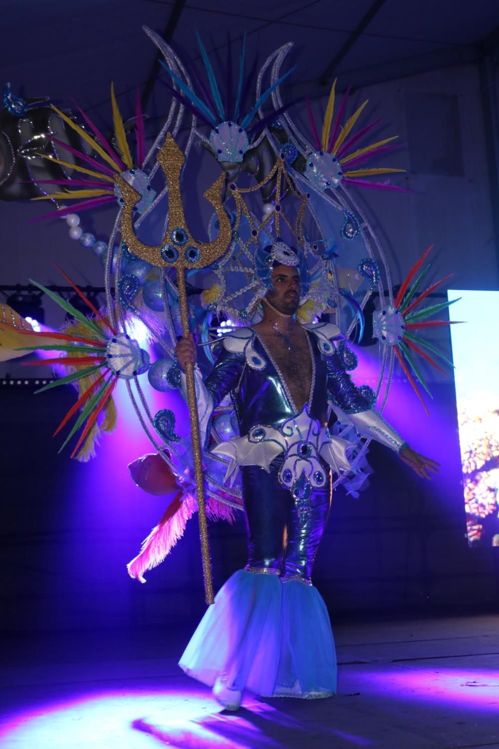 Predominio de tonalidades azules e imágenes de fondos marinos envolvieron la fantasía de creación colectiva a partir de una idea de Blas Noda. Vestuario y tocados pomposos, currados en el espacio taller de Los Timanfeiros por el mismo grupo, dan mayor brillo a la coreografía de Jonatan Gutiérrez que se paseó por el escenario, y también entre el público, a ritmo de la batucada dirigida por Willy Morales. Los Timanfeiros llevaron además una orquesta de 11 músicos para darle más fondo musical a su espectáculo.