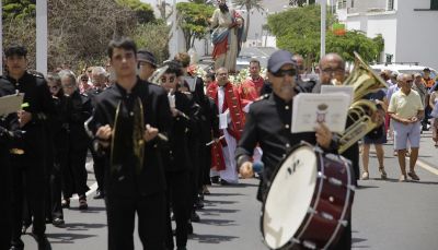 En el día principal de las fiestas patronales también se desplazó una amplia representación de autoridades civiles y militares que fueron recibidas con todos los honores por el anfitrión del municipio, Isidro Pérez. La Eucaristía programada para las doce del mediodía estuvo presidida por, Carlos María Marrero Moreno, párroco de varias parroquias del cono sur de la ciudad de Las Palmas y profesor de Instituto Superior de Teología de Canarias, concelebrada junto al párroco de San Bartolomé, Francisco José García. También contando con la presencia de Rafael Tejera, párroco de Tiagua, Yonathan Almeida, párroco de Yaiza, Juan Carlos Medina, párroco de San Ginés, Vicario Episcopal de Fuerteventura, La Graciosa y Lanzarote, el Diácono Alejandro Carmona y dos jóvenes seminaristas. Además, los cantos para la celebración estuvieron amenizados por los feligreses.
