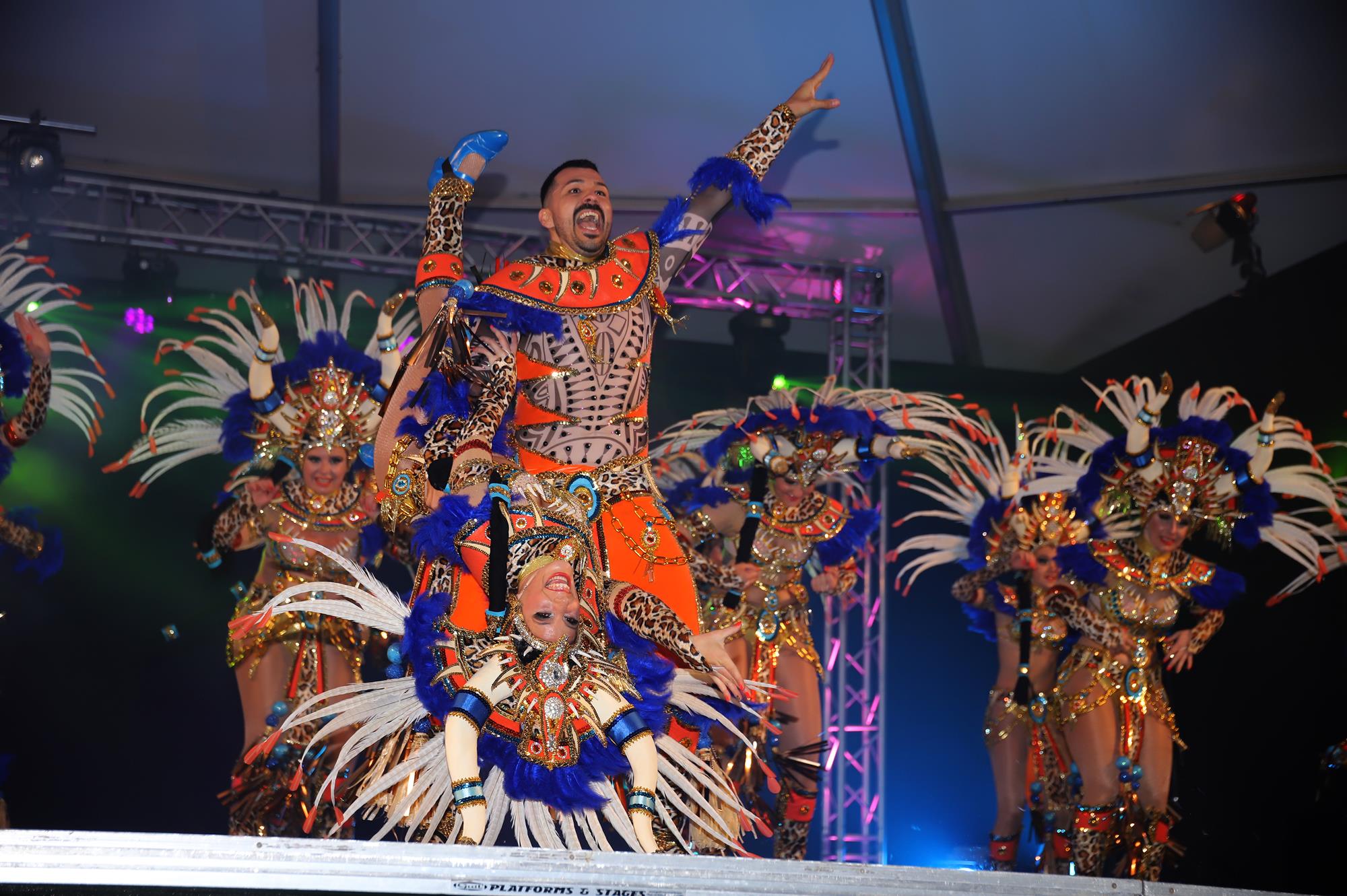 La carpa municipal de La Villa acogió este sábado la presentación de la comparsa Los Cumbacheros de Tahíche. Este año cumplen su décimo aniversario y lo celebraron con una explosiva puesta en escena y un espectacular diseño de Borja Abreu, "El Tesoro de Saba" . El grupo está bajo la presidencia y coreografía de Sergio Niz y a dirección musical de Gesury García. Sus 52 componentes sorprendieron al público que no dejo de aplaudirles la profesionalidad, disciplina y entrega durante toda su actuación.