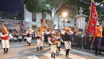 La romería comenzó en la explana junto al estadio municipal Alcalde Andrés Rodríguez Martín recorriendo las principales calles de La Villa de Agaete hasta llegar a la plaza de la Constitución donde el cuerpo de música, bajo la dirección del profesor Roberto Gil, realizó una destacada interpretación de la pieza 'Querida Lola', cuyos ecos resonaron con fuerza. Simultáneamente, el cuerpo de baile coordinado por la subdirectora Vanessa Pérez y con los arreglos coreográficos del director del baile Rubén Valiente ofreció una emotiva interpretación rememorando la danza de 'Los Renegados', recuperando la esencia de esta antigua tradición.