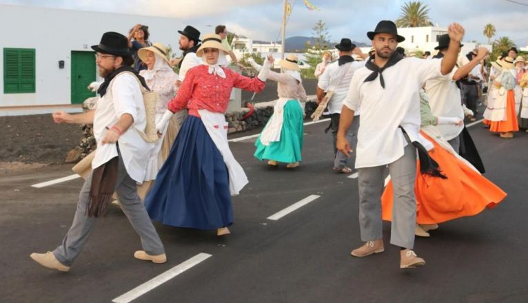 El camino de la romería este año también lució engalanado por banderas y rosetas multicolores instaladas en las farolas a lo largo y ancho del recorrido. La Agrupación Folklórica Rubicón de Yaiza, que la noche anterior celebraba sus primeros 20 años existencia en el Festival que lleva su nombre, abrió la romería tocando y bailando con apenas pausa. Las parrandas Janubio y Sondemar, también del municipio, y la legendaria parranda Los Buches de Arrecife sumaron su buen hacer para avivar el camino.