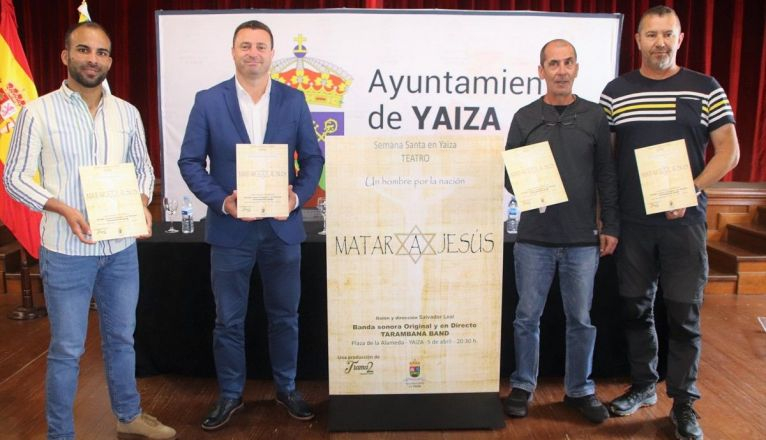 Yaiza estrena el próximo 5 de abril a las 20.30 horas en la Plaza de la Alameda la obra teatral ‘Matar a Jesús, un hombre por la nación’, que ha estado preparando la compañía Trama2 desde octubre del año pasado por encargo municipal “como una apuesta contundente por el arte que integramos a la oferta turística y cultural del municipio de Yaiza y Lanzarote para que perdure en Semana Santa”, así lo ha expuesto el alcalde, Óscar Noda, que ha presentado la obra este miércoles junto al autor del guión y director de la puesta en escena, Salvador Leal, y en compañía del concejal de Cultura, Daniel Medina, y el actor y productor de teatro Germán Barrios.