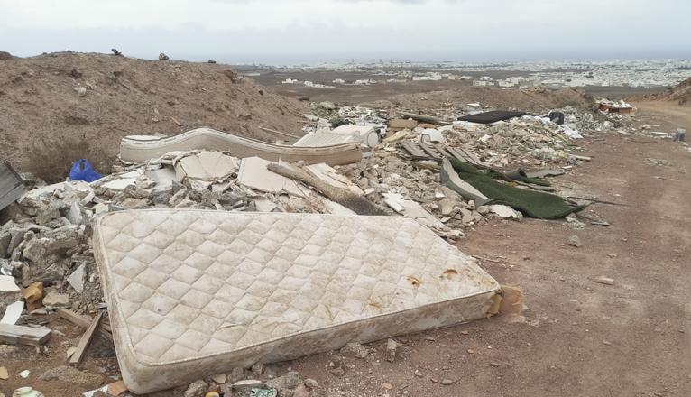 La basura, los enseres y los escombros se han adueñado de Montaña Mina, entre los municipios de Arrecife y San Bartolomé. A pesar de la existencia de la Red de Puntos Limpios que hay distribuidos por la isla para depositar enseres, el paisaje de esta zona se ha convertido en un vertedero.