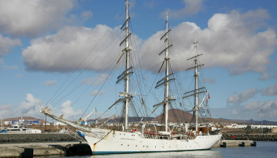 El navío fue construido en 1937 y sirve como barco escuela para estudiantes que seguirá recorriendo el mundo hasta la isla de San Martín pero antes hará otra parada en Gran Canaria para realizar tareas de mantenimiento.
