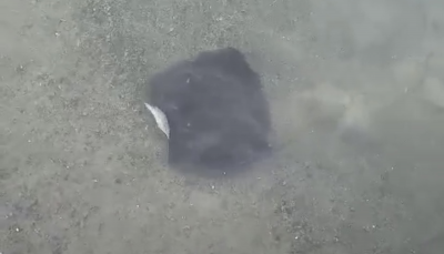 Este lunes, un lector ha hecho llegar a La Voz un vídeo donde se puede ver cómo un ejemplar de chucho nadaba con tranquilidad por el Charco de San Ginés. Este animal es muy común en las playas de Canarias y puede llegar a medir dos metros y medio de largo y casi un metro y medio de ancho.