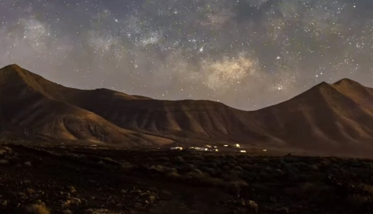 En un timelapse que ha compartido en redes sociales, el fotógrafo ha sacado en primer plano las montañas más antiguas de Lanzarote, que tienen aproximadamente 20 millones de años, la de Los Ajaches.
