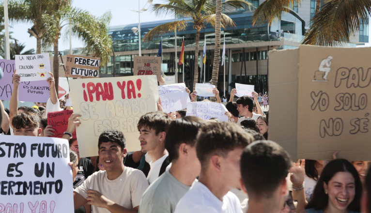 En la concentración, en la que han participado más de medio centenar de alumnos de distintos centros de Educación Secundaria de la isla, se ha podido ver cómo llevaban diferentes parcantas con mensajes como 'Nuestro futuro no ex un experimento' o 'PAU, yo solo sé que no sé nada'.