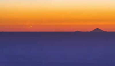 Según ha compartido en sus redes sociales, desde Lanzarote se puede ver este volcán en algunas épocas del año. En este caso, el fotógrafo no solo se quedó con la estampa de El Teide visto desde este espacio natural protegido, sino que aprovechó la puesta de la Luna, que solo contaba con un 2% de iluminación, para capturar la escena.