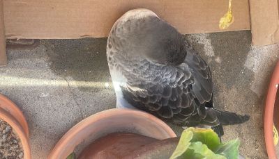 Una pardela cenicienta ha aparecido con un ala rota este sábado en Famara. Paula, una vecina de la localidad marítima de Teguise, encontró al ave marina detrás de una de sus macetas a las 07.30 horas de la mañana.