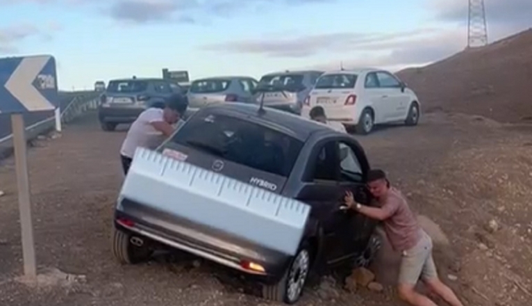 Una pareja de turistas se vio en apuros hace unos días en Las Grietas. Según publicó una usuaria en redes sociales, dos viajeros franceses vieron cómo su coche de alquiler se quedaba atrapado en un lateral de la carretera de este espacio natural.