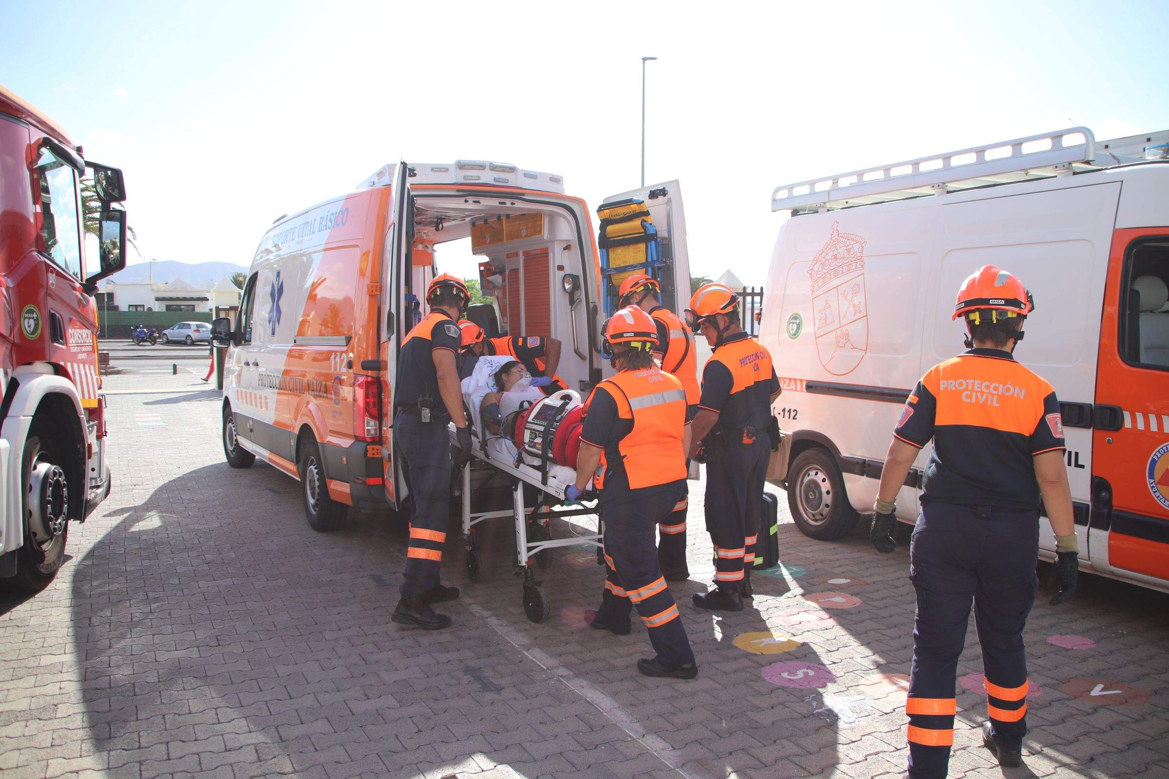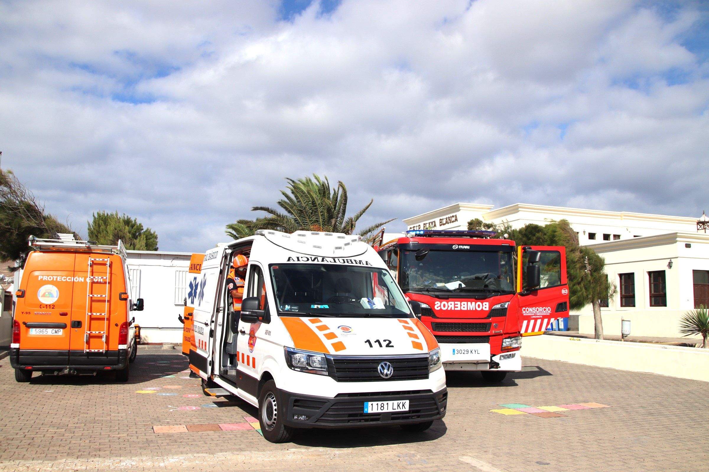Participaron tres bomberos profesionales del Consorcio, once voluntarios de Protección Civil y dos policías locales, además de los recursos técnicos desplegados: un camión de bomberos, cuatro vehículos de Protección Civil, incluida la ambulancia donde fue trasladada al centro de salud de Playa Blanca la profesora afectada por inhalación de humo, y una patrulla policial encargada de ordenar el tráfico y orientar el aparcamiento de los servicios intervinientes.