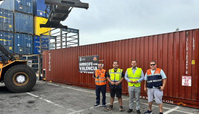 El baro contenedor con este primer envío que parte de manera directa desde la capital de Lanzarote zarpará esta noche desde el puerto de Los Mármoles, en Arrecife, rumbo hacia el Levante.
