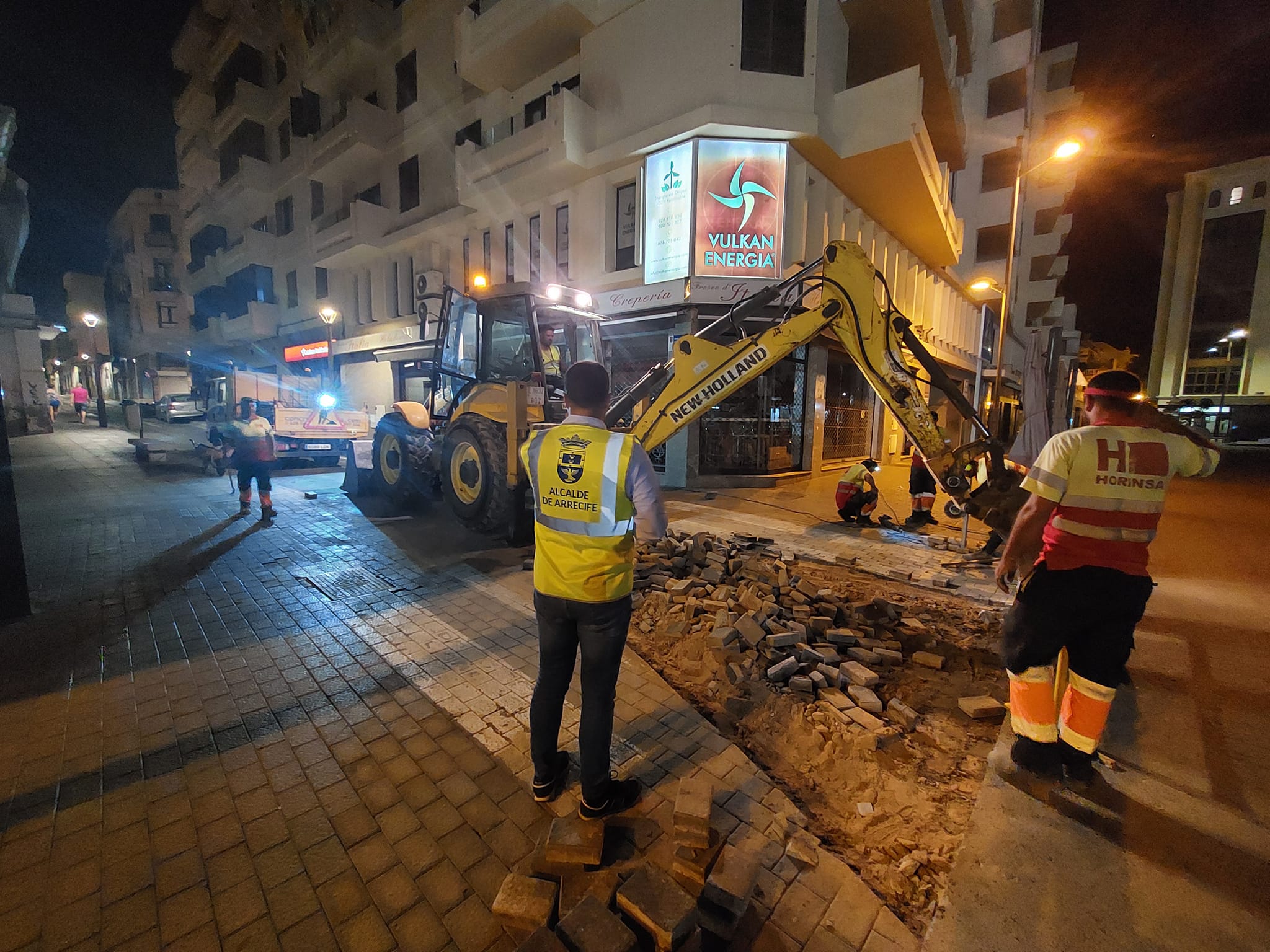 El alcalde de Arrecife, y responsable director del Área de Obras Públicas, Yonathan de León, asistió anoche para la supervisión de los trabajos de reasfaltado en el entorno de este instituto, que se ejecutan en horario de noche "para minimizar los inconvenientes".