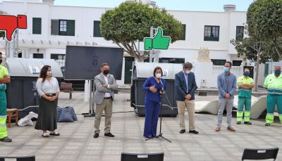 La alcaldesa de Arrecife, Astrid Pérez, acompañada por el concejal de Limpieza, Roberto Herbón, y directivos de la empresa Urbaser- concesionaria del Servicio Municipal de Limpieza- ha presentado este jueves, en la plaza del barrio de San Francisco Javier, una iniciativa de sensibilización para poner freno a la falta de civismo de muchos ciudadanos que arrojan los enseres a la vía pública o no trasladan los escombros de sus pequeñas obras a los puntos limpios habilitados en la isla.