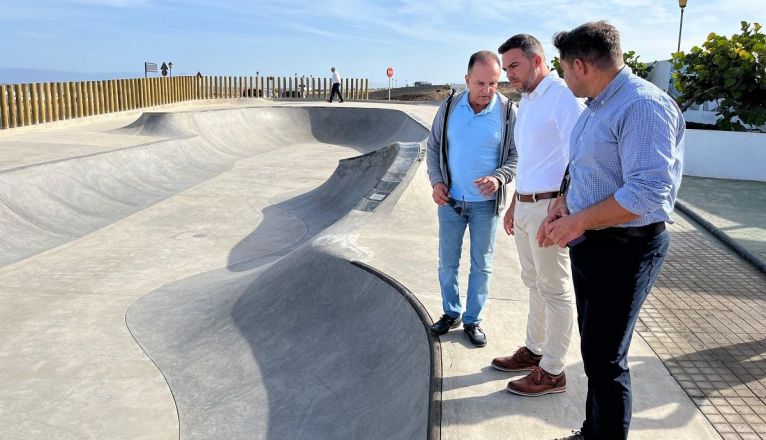 Santa”. “Teníamos marcado en rojo la culminación de esta obra porque era una demanda vecinal y del sector del skate poder disfrutar de un skatepark en la costa de Tinajo”, apunta el consejero del Cabildo, Jacobo Medina.