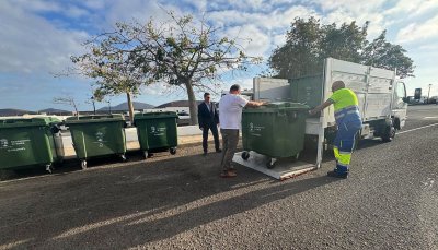 El municipio de Yaiza sustituye esta semana contenedores de basura deteriorados en distintas localidades sureñas por 200 depósitos nuevos, de 1.200 litros de capacidad cada uno. Se trata de una acción coordinada entre el Ayuntamiento y la empresa Valoriza Servicios Medioambientales, que desde el pasado 1 de junio es responsable de la recogida de residuos sólidos urbanos tras la decisión del gobierno presidido por Óscar Noda de contratar un nuevo servicio por la vía de emergencia ante las prestaciones deficientes que venía soportando el municipio.