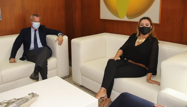 La presidenta del Cabildo de Lanzarote, María Dolores Corujo, ha mantenido este martes una reunión con el consejero de Obras Públicas, Transportes y Vivienda del Gobierno de Canarias, Sebastián Franquis, para planificar las obras y actuaciones que se llevarán a cabo en la isla durante la presente legislatura.