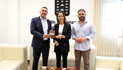 El presidente del Cabildo de Lanzarote, Oswaldo Betancort, y el consejero de Cultura Jesús Machín, recibieron este martesa la escultora lanzaroteña Cintia Machín Morín, galardonada con el Premio Menina 2025, un reconocimiento otorgado por el Gobierno de España a través de la Delegación del Gobierno en Canarias, por su labor en defensa de la igualdad y su capacidad para visibilizar, a través del arte, la realidad de las víctimas de violencia machista.