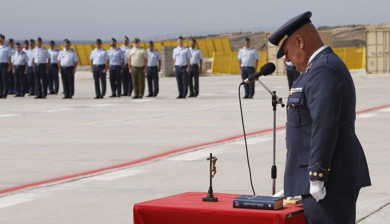 El acto ha tenido lugar en la mañana a las 11.00 horas, y han acudido diferentes autoridades militares y civiles, entre ellas, el General Jefe del Mando Aéreo de Canarias, Francisco Javier Vidal Fernández.