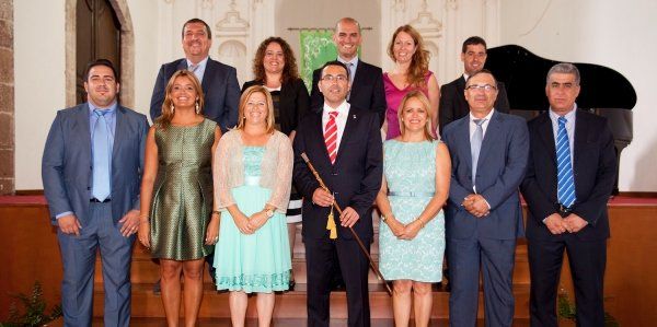 La distribución queda de la siguiente manera. Oswaldo Betancort García. Alcaldía. Transparencia y Acceso a la Información Pública. Coordinación Municipal. María de la Paz Cabrera Méndez. Mercadillo, Tenencia de Animales. Participación Ciudadana. Antonio Callero Curbelo. Turismo. Deportes. Comunicación Institucional. Transporte. Francisco Javier Díaz Gil. Educación. Juventud. Nuevas Tecnologías. Radio Municipal, Olivia Duque Pérez. Archivos. Bibliotecas. Cultura. Festejos. Patrimonio. Miguel Ángel Jiménez Cabrera. Economía. Hacienda. Catastro. Oficina Técnica. Policía Local. Sanciones. Myriam Jorge Camejo. Actividades Clasificadas. Agencia de Desarrollo Local. Comercio y Consumo. Empleo. Industria. Personal y Régimen Interno. Antonia Honoria Machín Barrios. Área de la mujer. Servicios Sociales y Bienestar Social. Centros Socio Culturales. Igualdad. Sanidad. Vivienda. Agustín Méndez Delgado. Agricultura. Cementerios municipales. Tráfico y movilidad.Alicia María Páez Guadalupe. Obras menores. Pesca. Turismo Interior. La Graciosa. Eugenio Robayna Díaz. Emergencias. Parque Móvil. Protección Civil. Playas, Vías y Obras. José Alberto Umpiérrez Delgado. Limpieza. Medio Ambiente. Parques y Jardines.