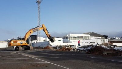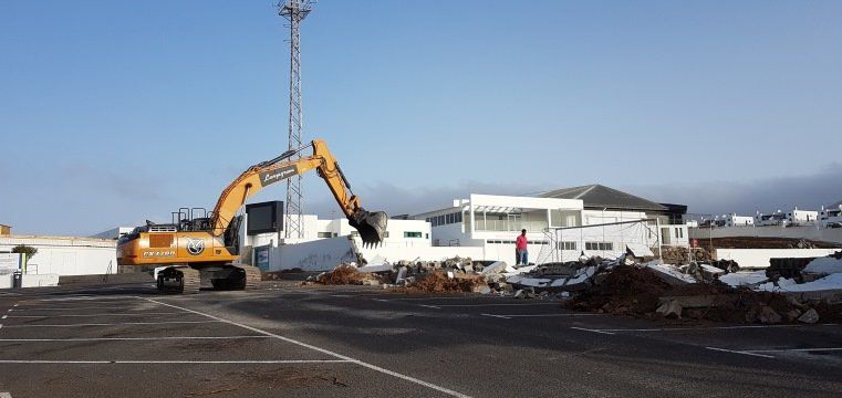 El Ayuntamiento de Tías está construyendo un nuevo cerramiento exterior para la Ciudad Deportiva de Tías. El actual muro en la zona oeste del polideportivo municipal, construido hace décadas, fue derruido este martes para dar paso a uno nuevo que incorporará una nueva puerta de acceso al campo, más accesible para las personas con movilidad reducida.
