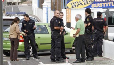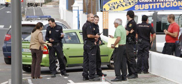 [La Policía acude a una disputa en un taller de Arrecife, donde un hombre denuncia con una pancarta una supuesta venta "fraudulenta"->74360]