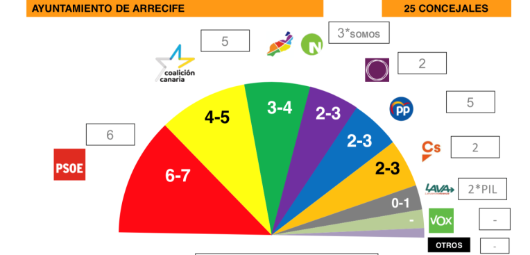 La encuesta encargada por Lanzarote Media y el Grupo Biosfera a la consultora Técnicos en Socioanálisis sobre las perspectivas electorales en Arrecife da como ganador de las elecciones al PSOE que incluso mejoraría sus resultados en la capital insular, pudiendo llegar a los 7 concejales. De esta manera confirma la tendencia de lo sucedido en las últimas Elecciones Generales del 28 de abril.