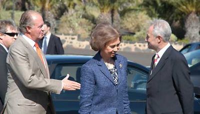 A continuación, se acercaron a las decenas de periodistas congregados en el exterior del edificio, donde realizaron unas breves declaraciones antes de comenzar su visita a las instalaciones. Mientras, en el salón principal del Palacio esperaban varios cientos de invitados -representantes de los sectores empresarial, político y cultural de las Islas-, quienes pasaron luego al vestíbulo del edificio, donde sería descubierta una placa conmemorativa.