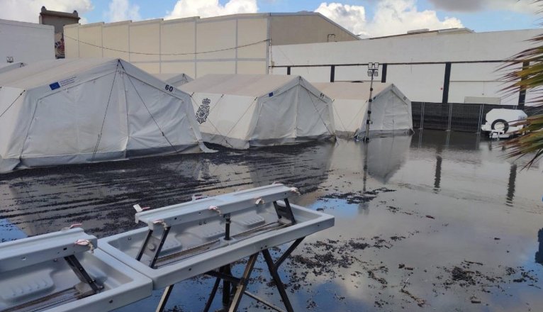 Este espacio sirve de lugar de acogida para los supervivientes de las pateras durante sus primeras 72 horas en la isla y suele inundarse con las lluvias y colapsarse con la llegada de varias embarcaciones. Sin embargo, el Ministerio del Interior ha adjudicado de emergencia la construcción de módulos para sustituir las carpas.