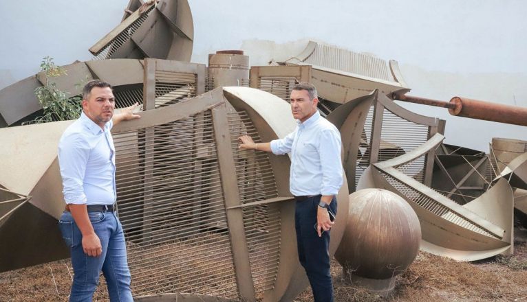 Durante la visita, ambos pudieron comprobar el estado de los dos juguetes de viento que están siendo reparados por los técnicos del Parque Móvil del Cabildo, con previsión de poder instalar la escultura “Fobos” en la glorieta de Tahíche el próximo mes de diciembre y, más adelante, colocar la obra diseñada en honor a Pepín Ramírez, en la rotonda del aeropuerto.