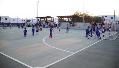 El Ayuntamiento de Yaiza abrió este pasado jueves la cancha para jugar a fútbol sala y balonmano en la localidad turística de Playa Blanca. Estos trabajos han supuesto la modernización, la reparación y nivelación del pavimento de la pista principal mejora del graderío, vallado perimetral, incorporación de mobiliario y obras de accesibilidad, aparte de la implantación de un nuevo parque infantil zonas de sombra y máquinas de calistenia. Todo ello con una inversión municipal de 450.000 euros.