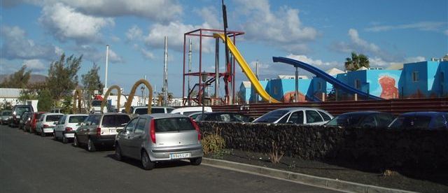 "Diariamente entran vehículos de grandes dimensiones con maquinaria pesada. La entrada por esta calle dificulta el poder aparcar nuestros vehículos y ocasionan mucho ruido", señala Juan Martín, que por ello decidió acudir al Ayuntamiento de Yaiza para conocer si las obras contaban con licencia municipal. Además, en este complejo también se puede observar "la instalación de varios toboganes en la calle que ha sido invadida".