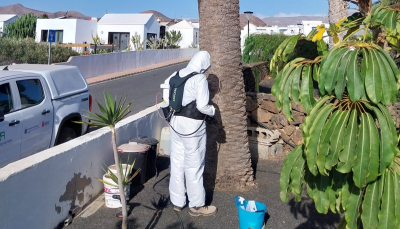 Estos trabajos se enmarcan dentro del Plan de Control y Erradicación de la Diocalandra frumenti en las palmeras de Lanzarote, desarrollado por la Consejería y el Cabildo de Lanzarote, que en los últimos meses han aplicado esta medida en diversos puntos con mayor afección por esta plaga en la isla.