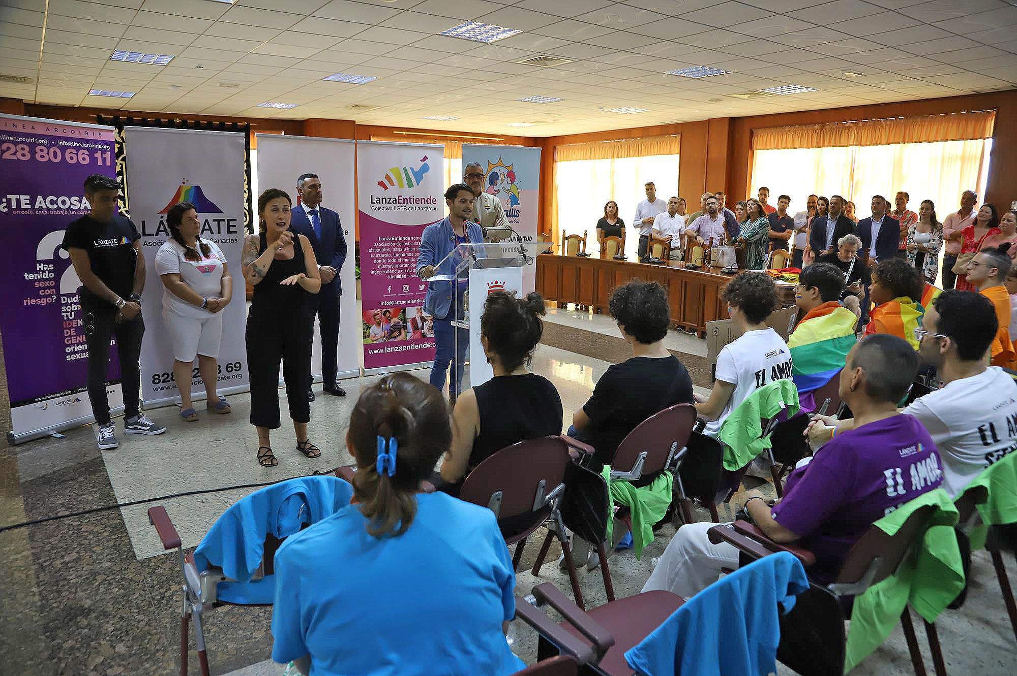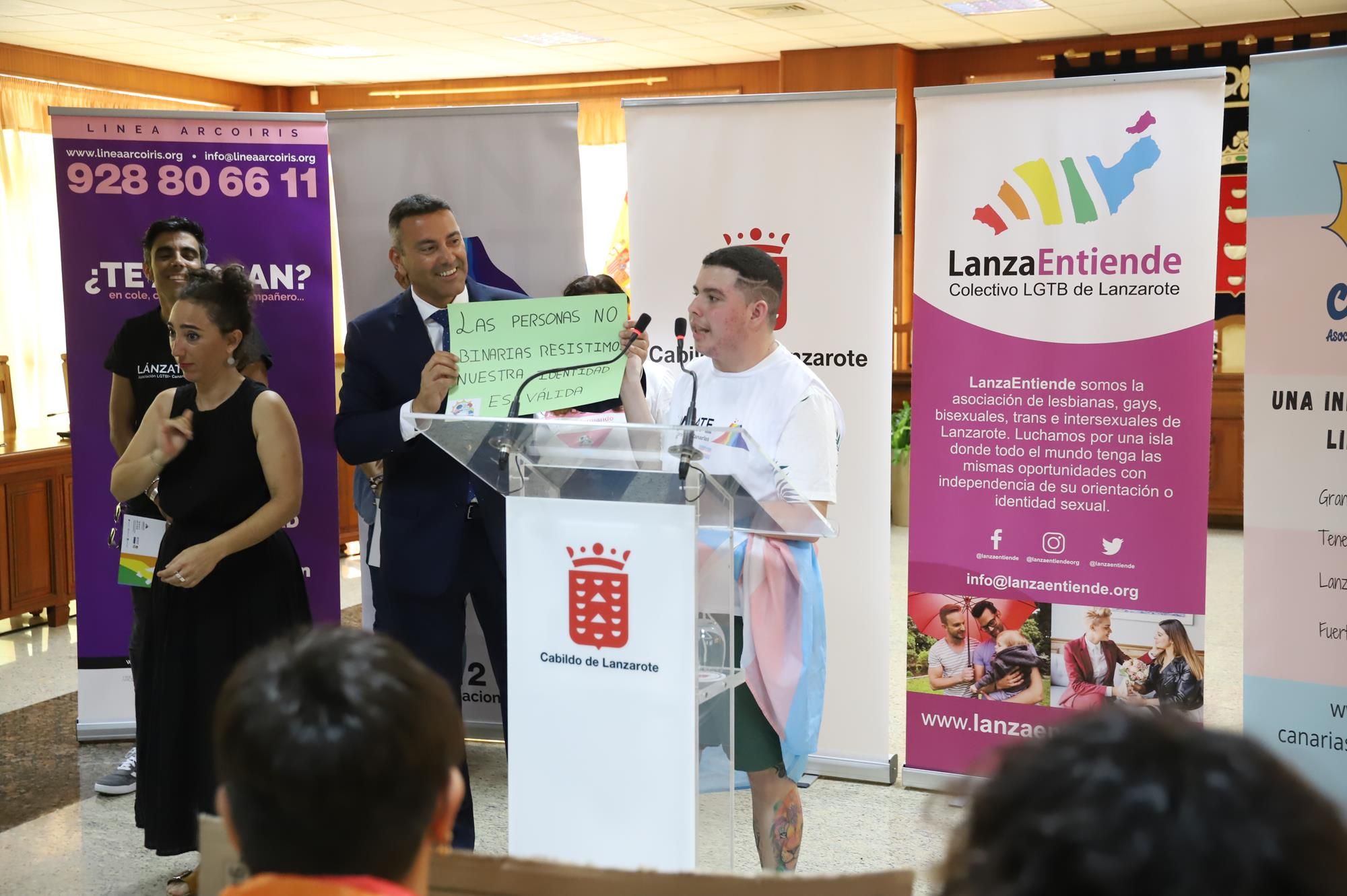 El presidente del Cabildo, Oswaldo Betancort, ha abierto este miércoles, 28 de junio, el acto de conmemoración del Día Internacional de Orgullo LGTBIQ+ dando las gracias a las asociaciones que han elegido esta Casa Cabildo para celebrar "un acto que nos une con un objetivo común: seguir reivindicando e impulsando medidas para que se normalice y se acepte completamente la diversidad, el derecho de las personas a vivir con libertad su orientación sexual e identidad de género, sin temor a discriminaciones ni represalias".