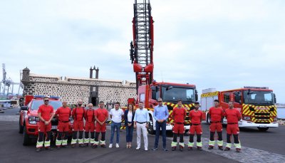 El Cabildo de Lanzarote, a través del Consorcio de Seguridad y Emergencias, presentó este lunes, en el parking del Castillo de San José, el nuevo vehículo autoescala que se suma al parque móvil para mejorar la respuesta ante urgencias en la isla.