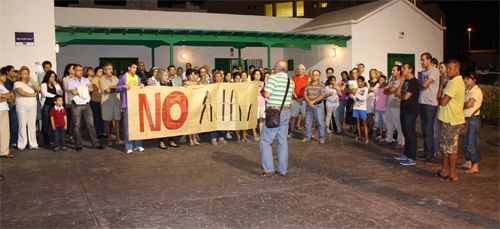 Bajo el grito de "No a la Antena, no", más de cien vecinos y vecinas del barrio de San Francisco Javier se manifestaron este miércoles frente al centro sociocultural del barrio, para exigir al Ayuntamiento de Arrecife que retire de forma inmediata la estación base de telefonía móvil está instalada en el inmueble de la calle Enrique IV, número 9, de este barrio.