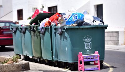 contenedores desbordados con los residuos en numerosas calles del municipio”.