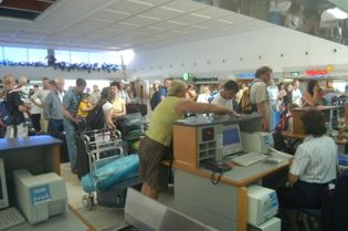 La falta de personal de la aerolínea española volvió a pasar factura a los turistas foráneos, quienes además aguardaron más de hora y media para recibir sus maletas.