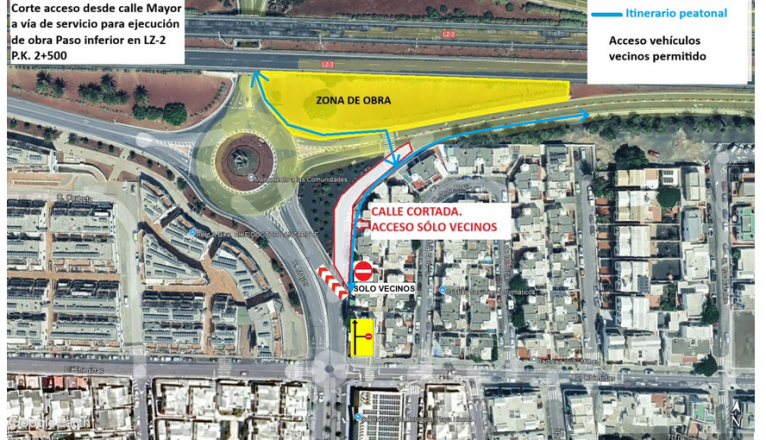 La Dirección General de Infraestructura Viaria del Gobierno de Canarias cerrará la calle Mayor hacía la vía de servicio, en dirección Arrecife, a partir de este miércoles 25 de septiembre. Esta modificación del transporte se da para continuar con los trabajos de urbanización desarrollados en el marco de las obras de construcción del nuevo paso inferior bajo la LZ-2, para mejorar la conectividad de la localidad lanzaroteña de Playa Honda, en el municipio de San Bartolomé.