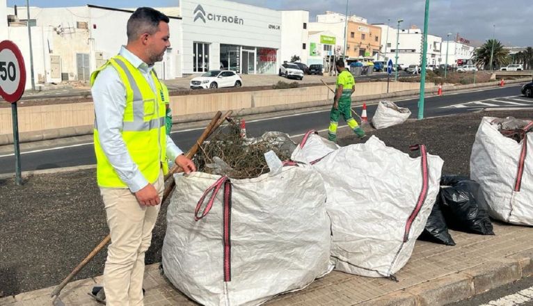 Medina recuerda que el Gobierno Insular se encuentra "trabajando en un macropliego que mejore las condiciones de los trabajadores del servicio y que aumente la plantilla y la logística necesaria para adecentar los márgenes de las carreteras de Lanzarote".