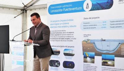 El alcalde "felicitó en su discurso" la inversión de 36 millones de euros y la ejecución del proyecto del cable que “une Lanzarote y Fuerteventura bajo el mar para mejorar de manera decisiva la seguridad y la calidad del suministro en las dos Islas, consiguiendo además reducir notablemente las emisiones de CO2 y así nuestra dependencia de los combustibles fósiles”.