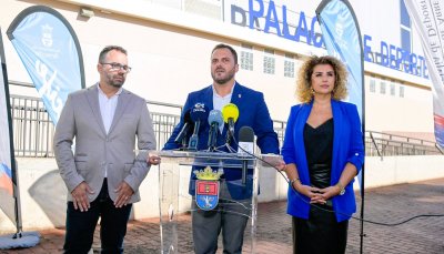 El alcalde de Arrecife, Yonathan de León, compareció ante los medios informativos junto al teniente de alcalde y concejal de Hacienda, Echedey Eugenio, y la concejala de Deportes y portavoz del PP, Eli Merino, para informar sobre el evento que tiene organizado el Ayuntamiento de Arrecife, a través de la Concejalía de Deportes, para la reapertura oficial este jueves 20.