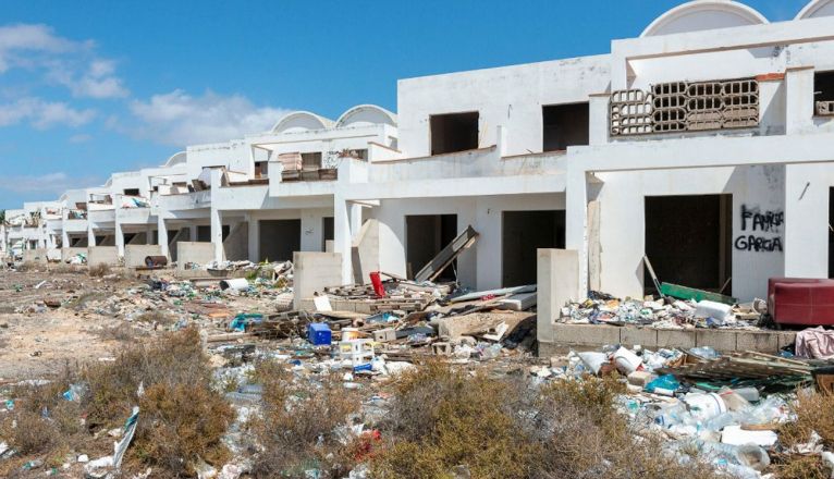 A juicio del líder socialista teguiseño, Marcos Bergaz, "el alcalde se va del Ayuntamiento sin solucionar el problema de este esqueleto en el corazón de Costa Teguise, que sigue en pie y en el que malviven cada día más personas".