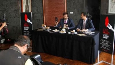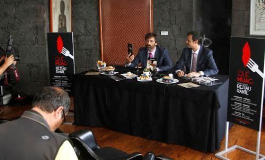 El presidente del Cabildo de Lanzarote, Pedro San Ginés, y el consejero delegado de los Centros, José Juan Lorenzo, presentaron esta mañana a la opinión pública Qué Muac, la revolucionaria propuesta gastronómico-artística de los Centros de Arte, Cultura y Turismo del Cabildo de Lanzarote para el restaurante del Castillo de San José.