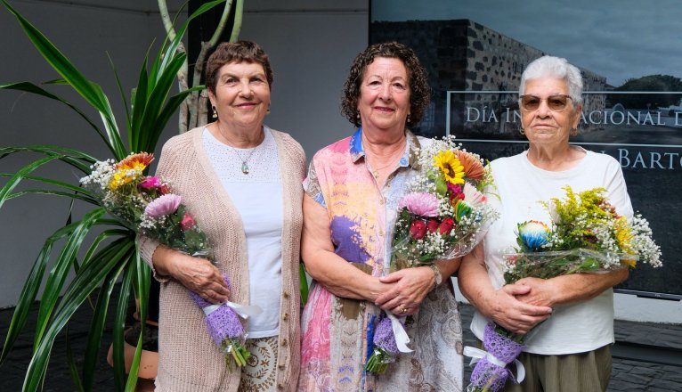 La primera teniente alcalde de San Bartolomé, Marlene Romero, en representación del alcalde Isidro Pérez, y la concejala de Igualdad, Mónica de León, han felicitado a tres batateras en nombre de todo el colectivo de mujeres del municipio: Teresita de Jesús Acuña Tejera, Leonor Díaz Caraballo y Reyes Pérez Díaz. Todas ellas reflejan los valores que caracterizan la historia de San Bartolomé y representan el marcado arraigo al entorno rural del municipio, en este caso vinculado a la quesería, la viticultura y el gofio.