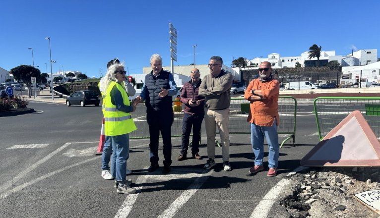 El alcalde, José Juan Cruz, visitó la zona junto al primer teniente de alcalde, Nicolás Saavedra, los concejales de Urbanismo y Movilidad, Ulpiano Calero y Sergio García, y técnicos del ayuntamiento y de la empresa para supervisar los trabajos, presupuestados en 363.04, 30 euros (con impuestos).