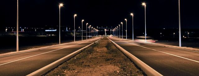 Los puntos de luz van instalados en báculos de fibra de 9 metros de altura sobre el nivel de la vía, con luminarias IP-66, equipos y lámparas VSAP de 150 vatios y cajas de conexión y protección de equipos de medida.