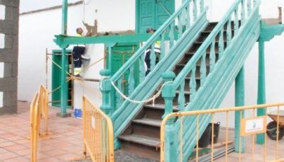 Operarios municipales realizan esta semana trabajos de conservación del patrimonio en la Casa de la Cultura Benito Pérez Armas de Yaiza. Esas labores consisten concretamente en el arreglo del balcón y las escaleras situadas en el patio del emblemático edificio, aunque también destaca la intervención en las salas de exposición para evitar el deterioro de sus paredes.