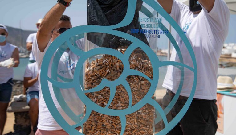Los miles de colillas han sido depositados en una escultura con forma de concha que permite ver el nivel de residuos y que pretende servir de recordatorio permanente para visibilizar de manera muy gráfica el daño que cada una de las colillas puede llegar a generar.