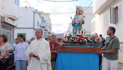 Finalizada la Eucaristía, se procedió a la procesión por las calles del barrio presidida por la imagen de Nuestra Señora María Auxiliadora. Junto a la Virgen iban el sacerdote celebrante, los niños y niñas que este año han recibido la Primera Comunión, autoridades municipales como el alcalde de Arrecife, Yonathan de León y el concejal de Fiestas Echedey Eugenio.